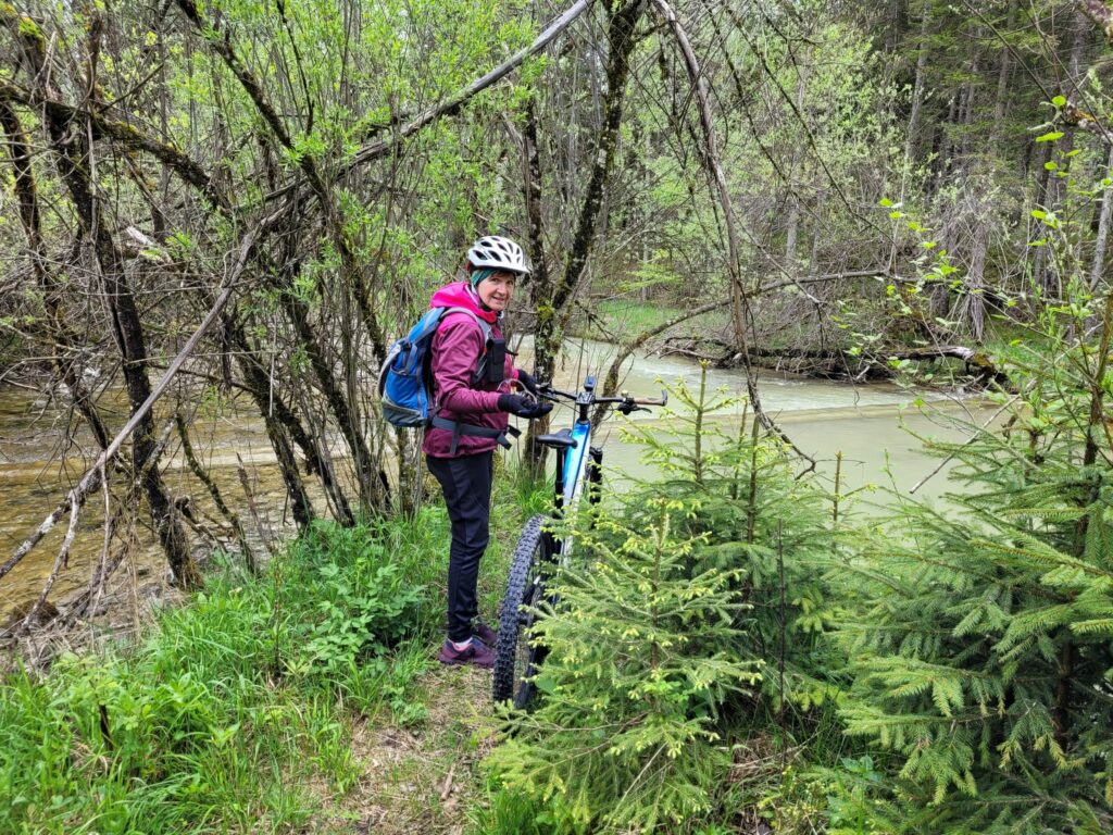 Leider passt der offizielle, von Alpenwelt Karwendel runter geladenene Track nicht überall und so beschert uns mein Tacho ein paar mal hin und her fahren auf dem Weg zum See. Und endet zwischen zwei Bächen/Flüssen/ und fast im WASSER.