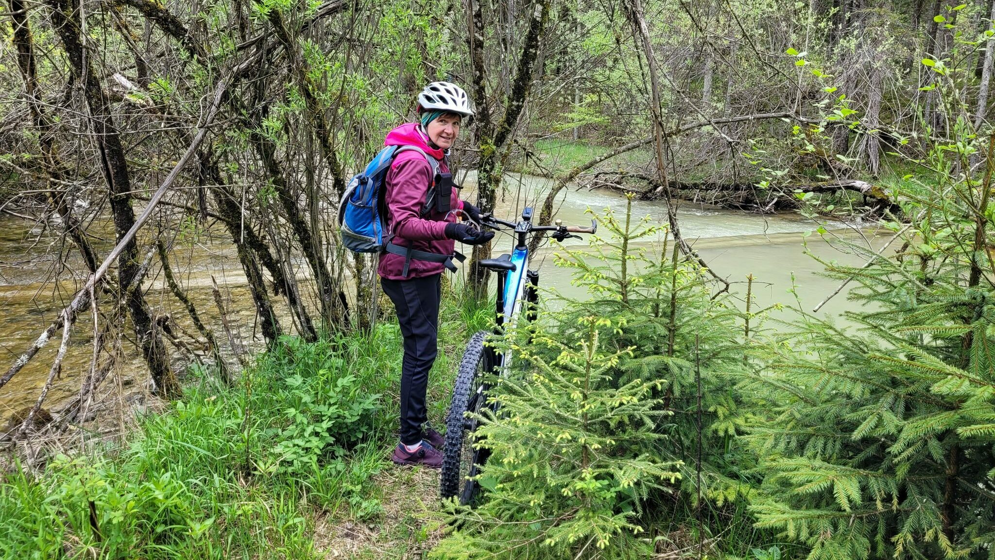 Leider passt der offizielle, von Alpenwelt Karwendel runter geladenene Track nicht überall und so beschert uns mein Tacho ein paar mal hin und her fahren auf dem Weg zum See. Und endet zwischen zwei Bächen/Flüssen/ und fast im WASSER.